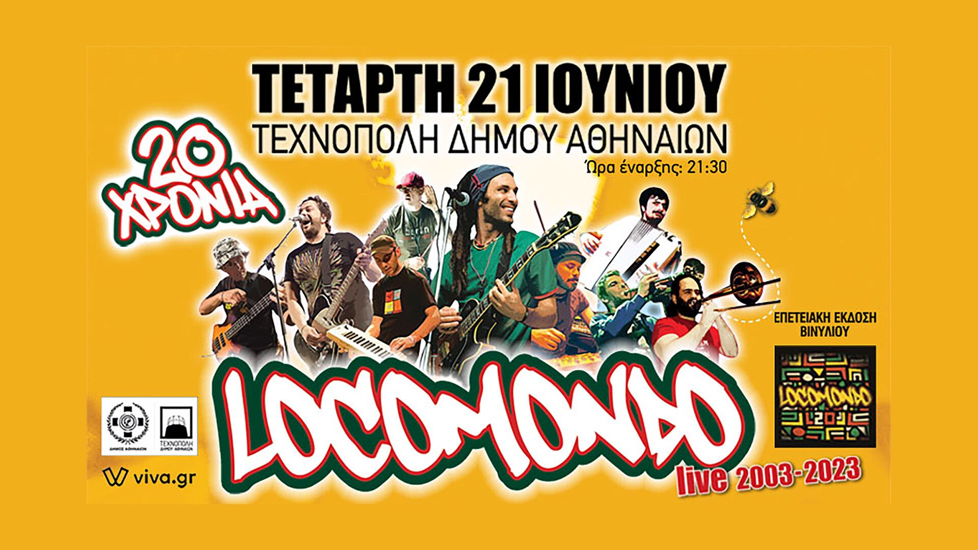 Την Τετάρτη 21 Ιουνίου παγκόσμια ημέρα μουσικής οι Locomondo γιορτάζουν τα 20 χρόνια τους στην Τεχνόπολη Δήμου Αθηναίων μ’ ένα αξέχαστο συναυλιακό πάρτι !