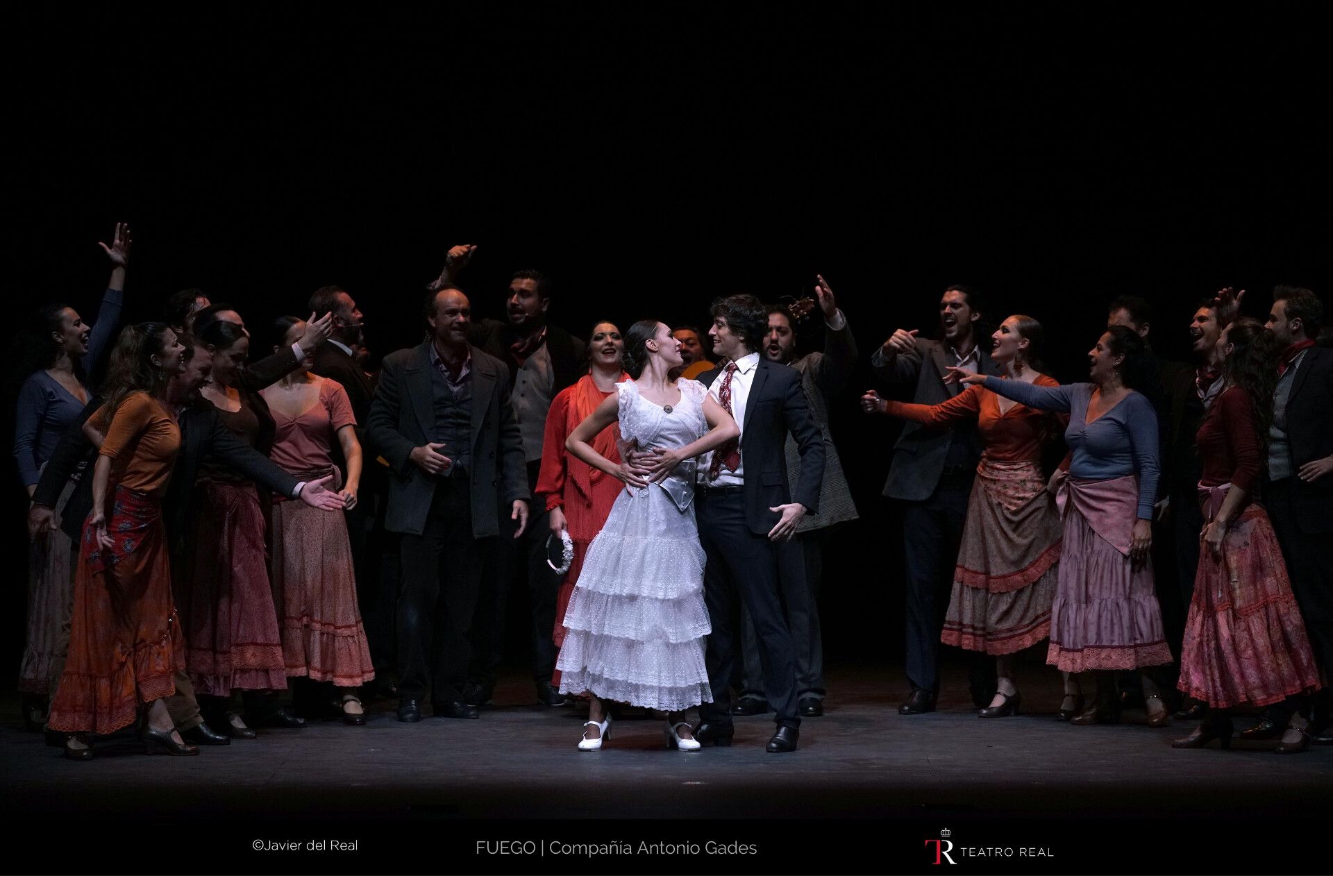 Επιτομή της πεμπτουσίας της φιλοσοφίας του Gades – “επιστρέφω στην παράδοση για να εξελιχθώ” – το “Fuego” είναι η ιστορία ενός βαθιά ερωτευμένου νεαρού ζευγαριού, που η σχέση τους περιπλέκεται όταν ένας χαρισματικός και σαγηνευτικός ταυρομάχος μπαίνει στη ζωή τους. Ο ταυρομάχος σαγηνεύει τη γυναίκα και προκαλεί ένταση και ζήλια μεταξύ των δύο ανδρών. Τα έντονα συναισθήματα της αγάπης, της επιθυμίας και της αντιπαλότητας εκφράζονται μέσα από τον δυναμικό χορό και τη μουσική του φλαμένκο. Οι χορευτές μεταδίδουν την παθιασμένη φύση των χαρακτήρων τους μέσα από τις κινήσεις τους, αναδεικνύοντας την ωμή ενέργεια και τον αισθησιασμό που ενυπάρχει στο ισπανικό φλαμένκο. Η ιστορία του “Fuego” εξερευνά την πολύπλοκη δυναμική της αγάπης, της έλξης και της προδοσίας.
