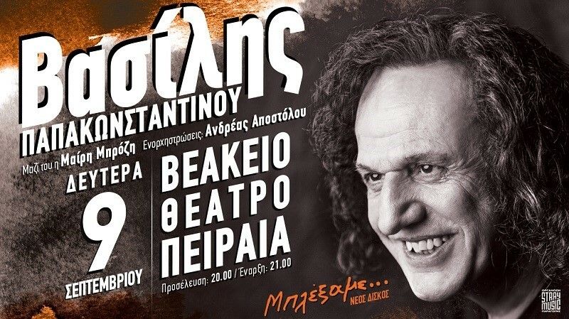 τη Δευτέρα 9 Σεπτεμβρίου, στο Βεάκειο Θέατρο Πειραιά. Αυθεντικός, συναισθηματικός, εκρηκτικός, ο Βασίλης μετράει «κοντά μισό αιώνα» πορείας, αμέτρητους δίσκους, τεράστιες επιτυχίες και θρυλικές συναυλίες. Θρυλική αναμένεται να είναι και αυτή στο Βεάκειο, με τον Βασίλη να μας τραγουδάει, πέρα από μια επιλογή από τα αγαπημένα μας διαχρονικά τραγούδια-σταθμούς, και κομμάτια από το νέο του δίσκο «Μπλέξαμε», που κυκλοφόρησε αρχές Ιουνίου, σε στίχους της Λίνας Δημοπούλου,