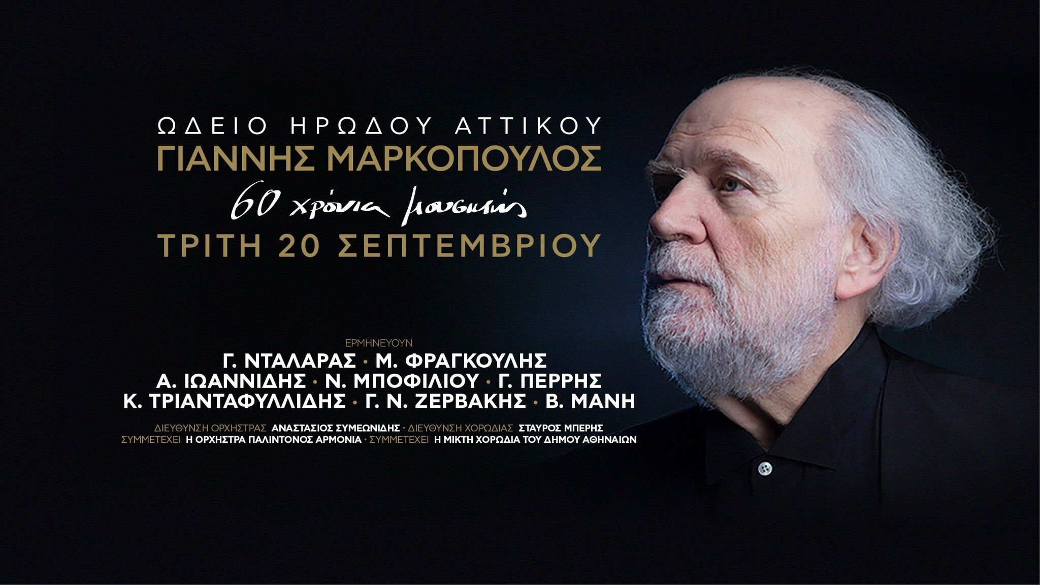 Έχοντας συνεργαστεί με τους σημαντικότερους Ελληνες ερμηνευτές εδώ και περισσότερο από μισό αιώνα, ο Γιάννης Μαρκόπουλος στρέφεται στη νέα γενιά που θα συνεχίσει να μεταλαμπαδεύει τη μουσική του στις επόμενες, με αυτούς τους καλλιτέχνες που εκπροσωπούν για τον ίδιο το καλλιτεχνικό ιδεώδες, υπηρετώντας το γνήσιο και το αυθεντικό στη μουσική. Θα συμμετέχει η ορχήστρα Παλίντονος Αρμονία, υπό τη διεύθυνση του Αναστάσιου Συμεωνίδη και η μεικτή χορωδία του Δήμου Αθηναίων υπό τη διεύθυνση του Σταύρου Μπέρι.
