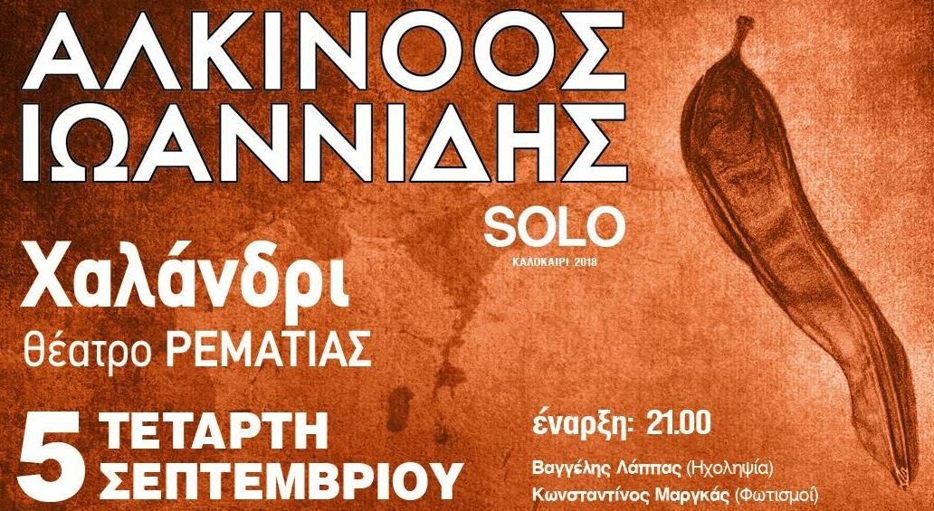 Ο Αλκίνοος Ιωαννίδης παρουσιάζει φέτος ένα σόλο πρόγραμμα. Μόνος επί σκηνής, παίζει και τραγουδάει τα τραγούδια του στην απλούστερη μορφή τους, μεταφέροντάς μας στη στιγμή της δημιουργίας τους. Ακολουθώντας μια παράδοση αιώνων, αυτή των τροβαδούρων, ταξιδεύει από πόλη σε πόλη μεταφέροντας αισθήσεις, αισθήματα, σκέψεις, εμπειρίες, όνειρα και πραγματικότητες που αφορούν όλους μας.
