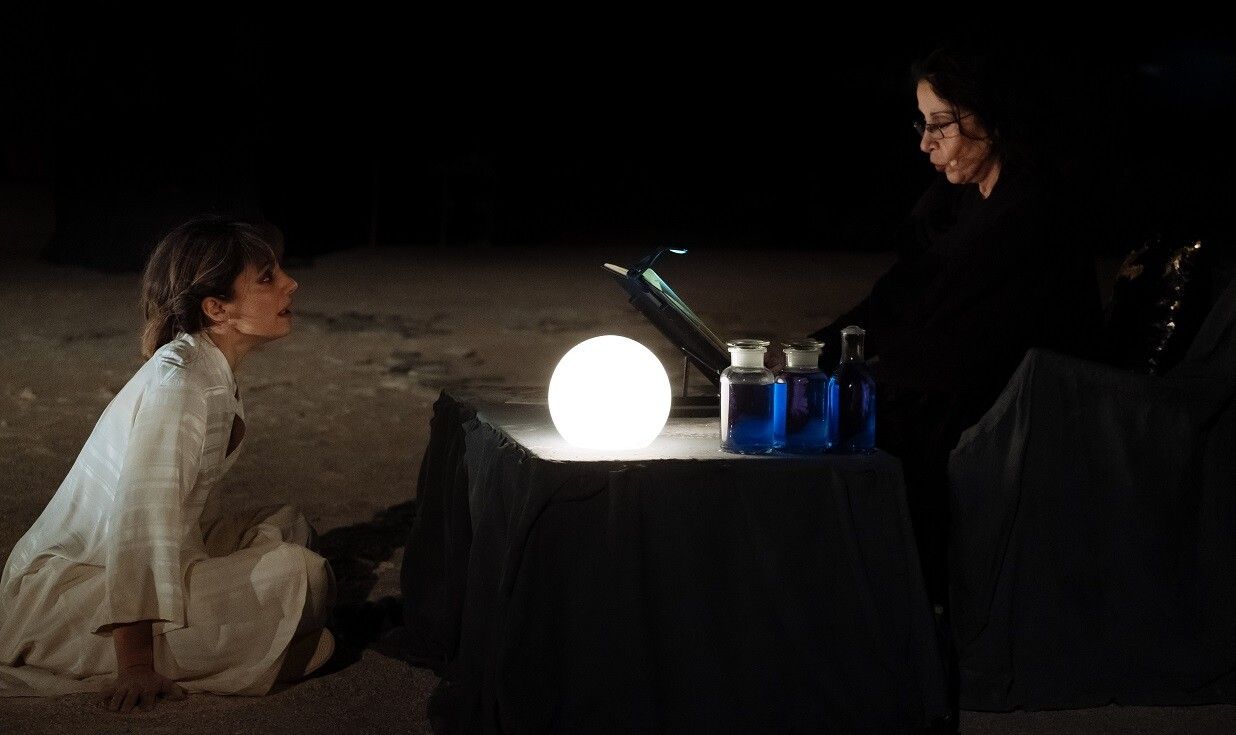 Το τραγούδι του ΜάνουΧατζιδάκι, με τους στίχους του Παντελή Πρεβελάκη από τον «ΜεγάλοΕρωτικό» (1972), μου ερχότανσυνέχεια στο στόμακατά τη διάρκεια των προβών. «ΚάποιακατάραείναιΘεού»… «σε χτύπησεοργή Θεάς»… «Μιας θεϊκήςεκδίκησηςάμοιροςστόχος»…«Σαν μέλι με φαρμάκι…», «Μα τα δεσμά της αγάπηςπρέπει να είναιχαλαρά».